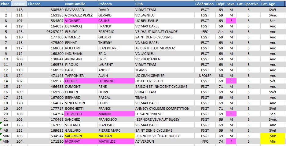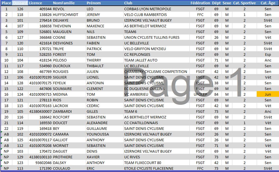 Classements du Prix cycliste d’Izernore FSGT du samedi 21 juin 2025.