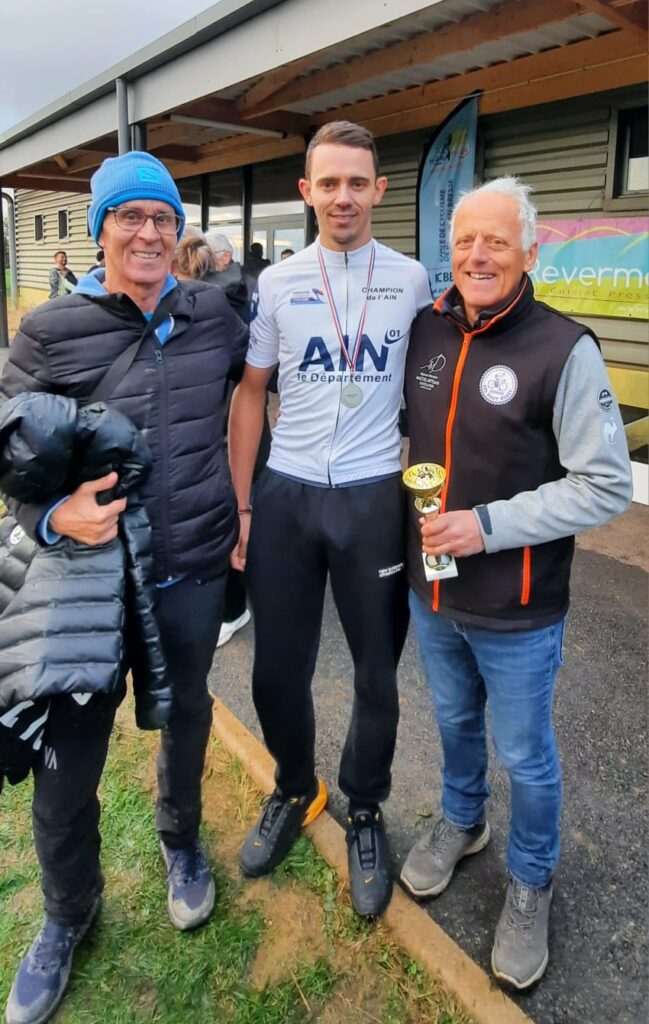 Une belle performance de notre coureur Medhi Perrier sur le cyclo-cross de Treffort Val Revermont qui était support du championnat de l’Ain. Après avoir été longtemps en lice pour la victoire sur un circuit très boueux, Medhi termine 3ème au scratch et s’empare du titre de champion de l’Ain (-de 40 ans)